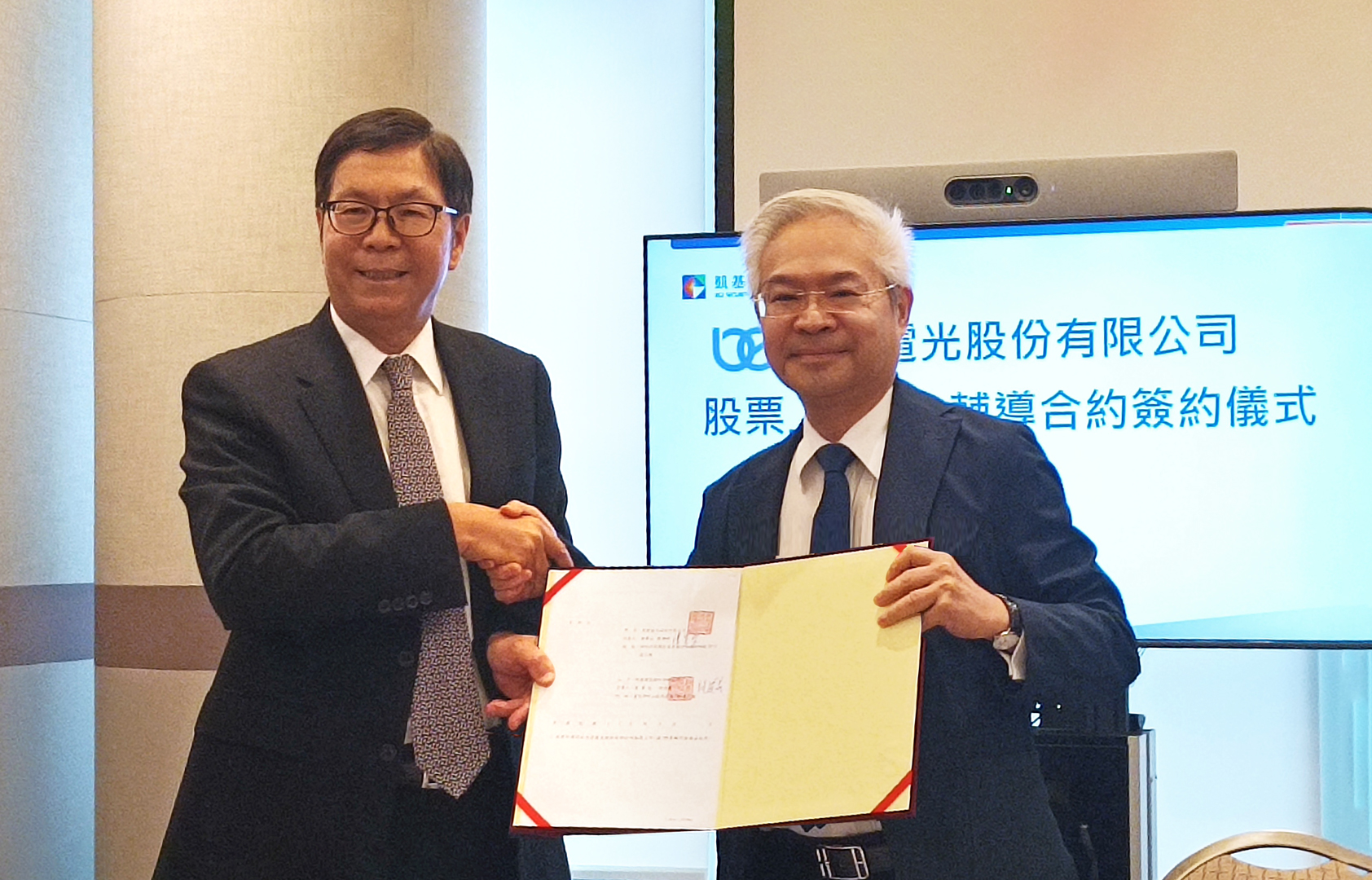 圖說:凱基證券與先發電光簽定股票上市櫃輔導合約,由凱基證券董事長許道義(左)與先發電光董事長陳憲煒代表簽約。