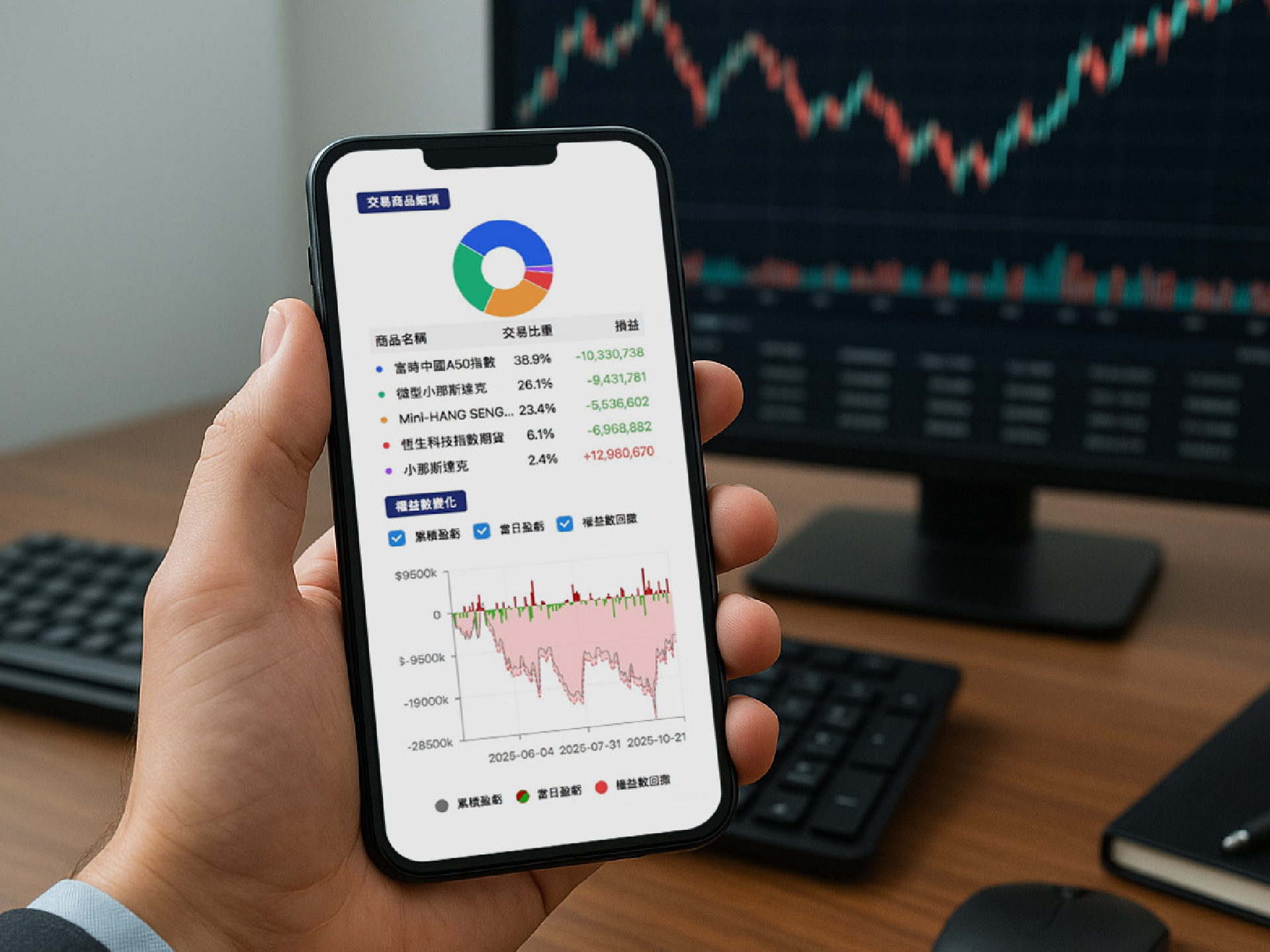 凱基期貨「期權績效透視鏡」將複雜的交易紀錄,轉化為直觀的診斷報告,並提出各項解方,包含1.跨市場實力對標:系統引入高規格的對標機制,將投資報酬率與「台股加權指數」及「S&P500期貨」走勢重疊對比。藉由客觀數據,誠實釐清獲利實力。2.全商品獲利地圖:涵蓋國內外期貨與選擇權交易,透過視覺化區塊展現「獲利地圖」,辨識出哪些商品是獲利金雞母或拖累績效的隱形成本。3.視覺化數據洞察:如同投資界的性格測驗,結合視覺化圖表與關鍵績效指標(勝率、盈虧比、操作多空比、MDD等),都能透過數據一鍵判讀。4.兩年長區間回顧:透過長時間交易區間序列數據,精準抓出投資人長期忽略的交易慣性與盲點。5.複製贏家模式:內建凱基策略的歷史績效對比,讓客戶在審視投資表現時,也能獲得更多元的策略啟發,加速優化交易路徑。