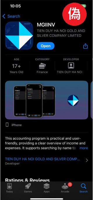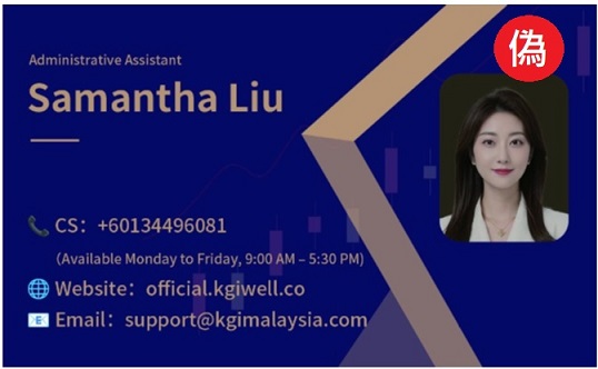 近來有不明人士盜用KGI(凱基)之名義及商標,偽造不實之KGI官方網站連結(https://apps.apple.com/cn/app/mgi-inv/id6754921929)與APP下載管道,同時偽冒KGI員工名義散發數位名片,並於該名片記載偽造之KGI網址及Email Address(https://official.kgiwell.co /、https://official.kgiwell.co/homepage/、support@kgimalaysia.com),藉此取信誘導投資人點擊進入該不實網頁下載虛偽之APP,或冒用KGI員工之身分與投資人聯繫遂行詐騙行為。