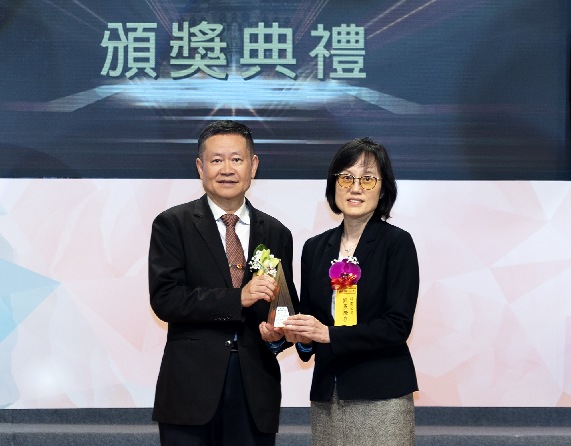 圖說:凱基證券榮獲「國家品牌玉山獎」最佳產品獎,由考試院副院長許舒翔頒獎,大經紀營運管理處主管劉靜梅代表領獎。