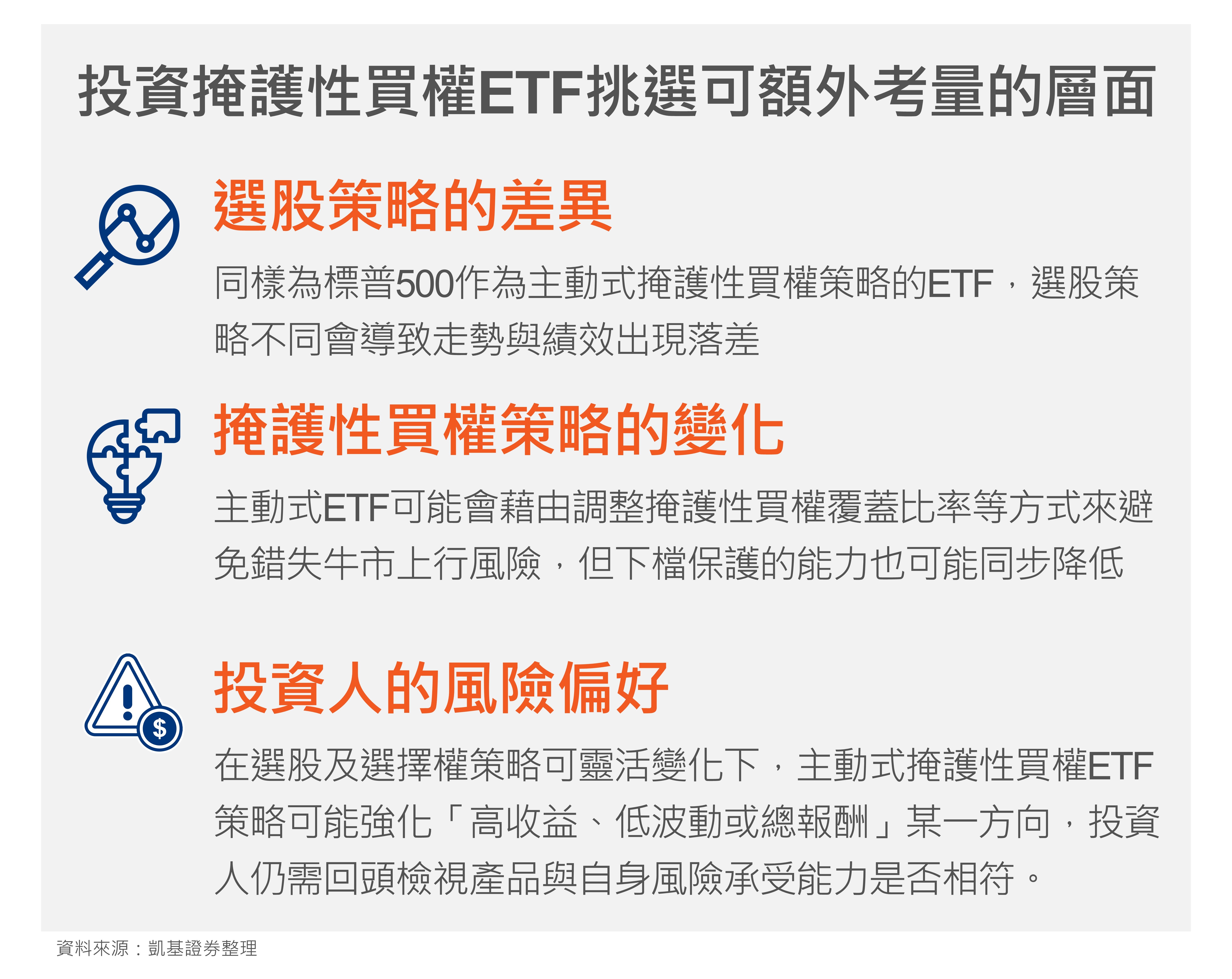 👉主動式掩護性買權ETF策略變化大,投資人在選擇時應評估更多層面!