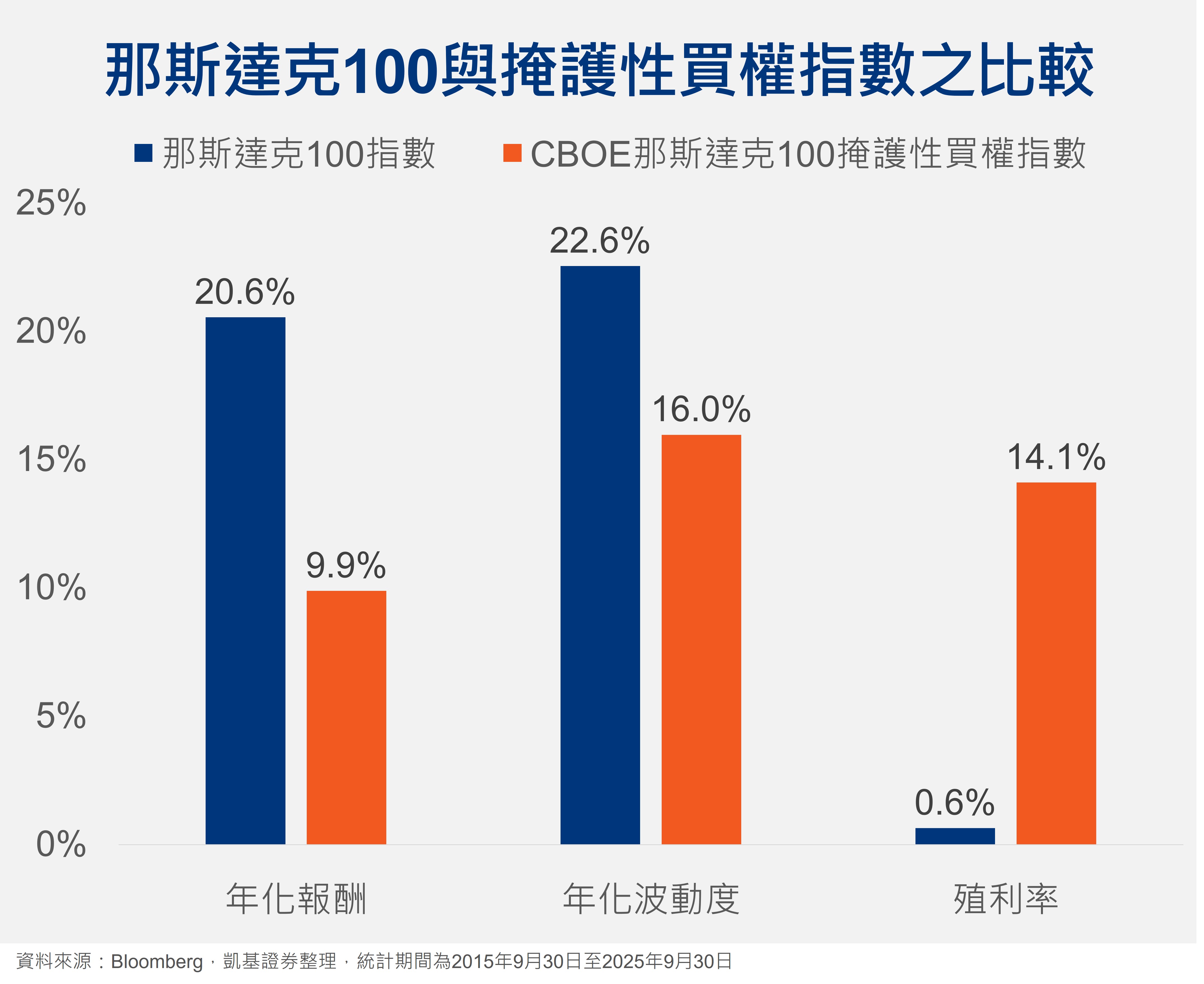 以那斯達克100及其相關掩護性買權指數為例,在掩護性買權策略帶動下,指數近十年平均年化波動度較那斯達克100指數降低30%,殖利率部分則出現大幅領先,顯示這類型的ETF適合希望降低波動且有現金流需求的投資人,但也需留意在牛市環境下,整體投資報酬可能受到壓抑之情形。