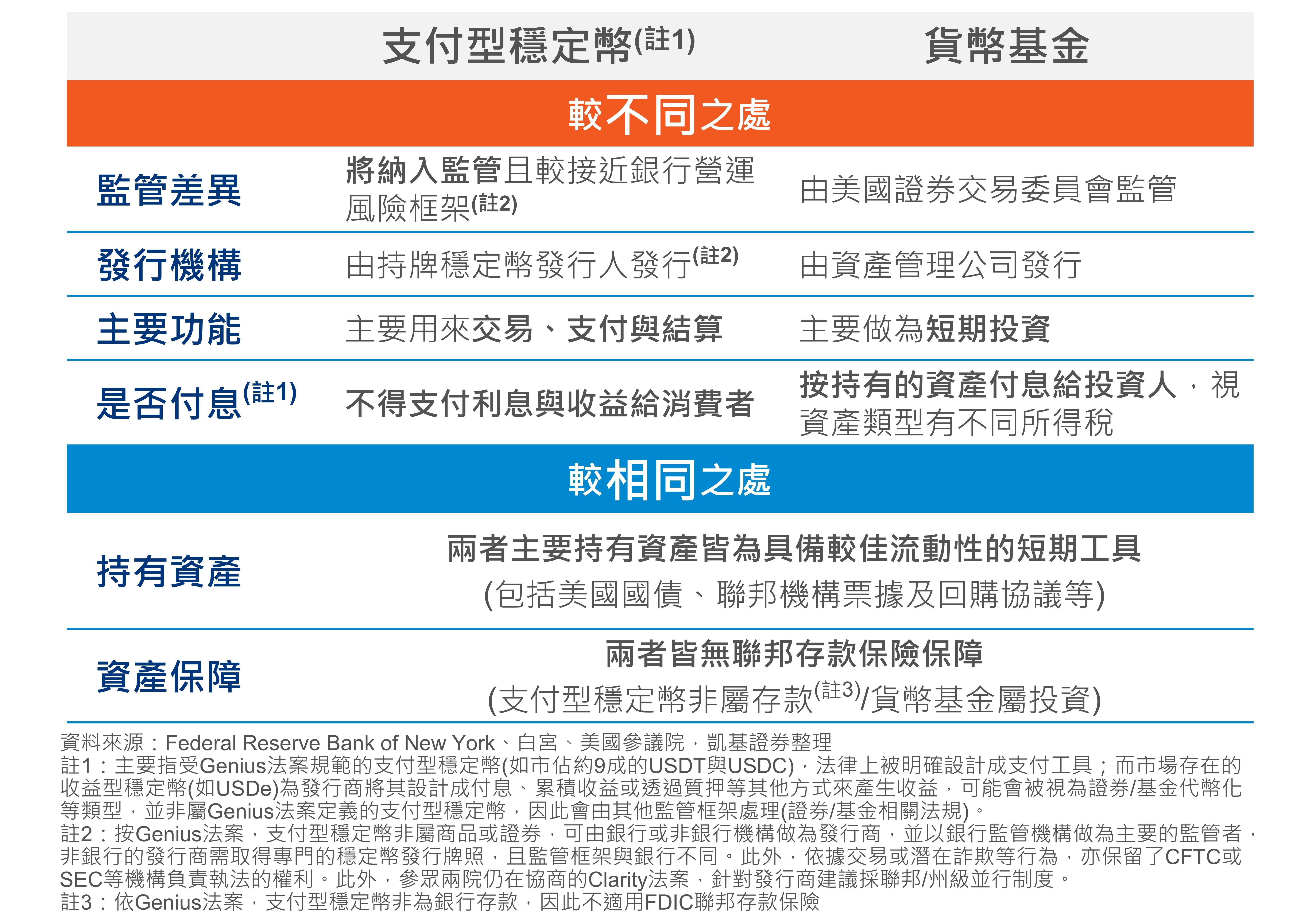 1️⃣ 支付型穩定幣與貨幣基金特性有諸多相似,但支付型穩定幣按法規是不能付息的