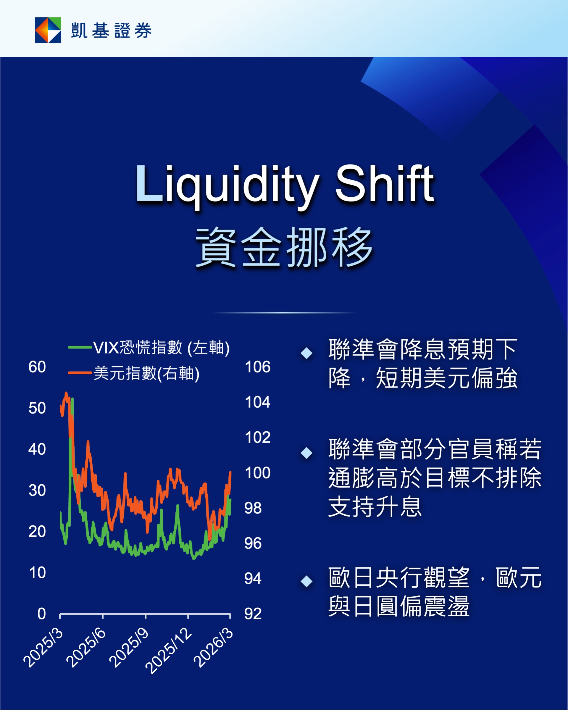 川普貿易政策稍歇,全球市場短暫回穩,但受到對伊朗的核安全制裁,形勢快速轉變為以色列與美國對伊朗的戰事,金融市場氣氛轉趨謹慎,風險資產回檔,油價竄升。全球經濟仍具韌性,包括美國與日本在內的製造業有起色,雖聯準會3月會議顯示降息中位數不變,然而利率期貨反應降息幅度縮減,後續市場怎麼因應?