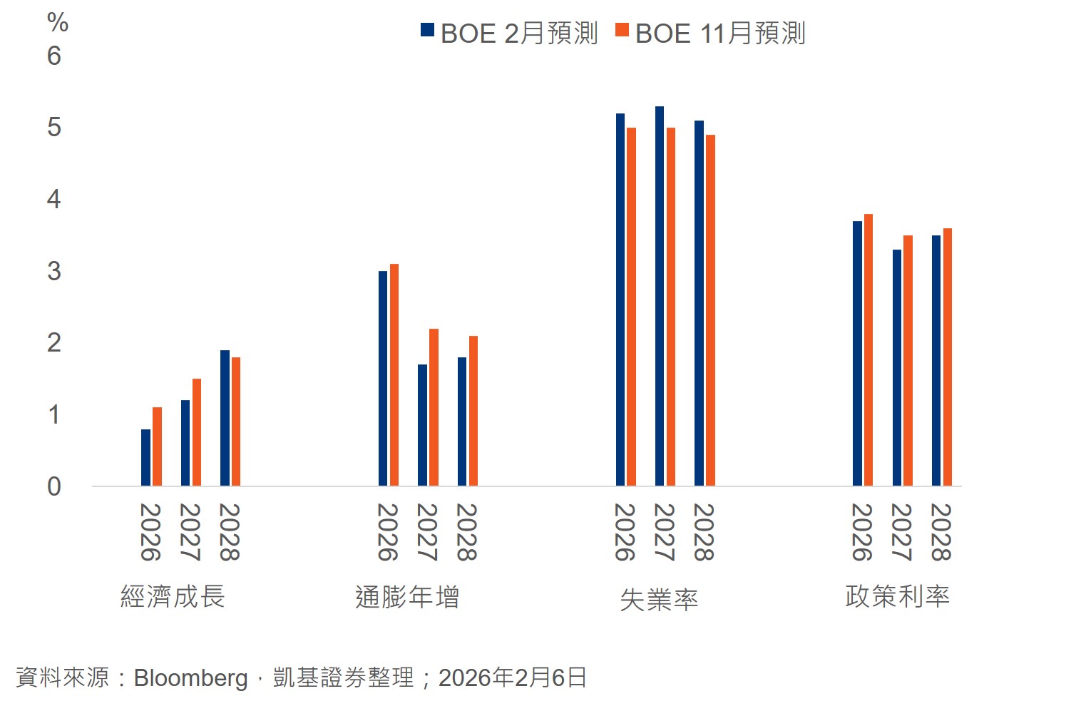 🔹貨幣政策:英格蘭銀行預估2026年通膨回落,景氣放緩