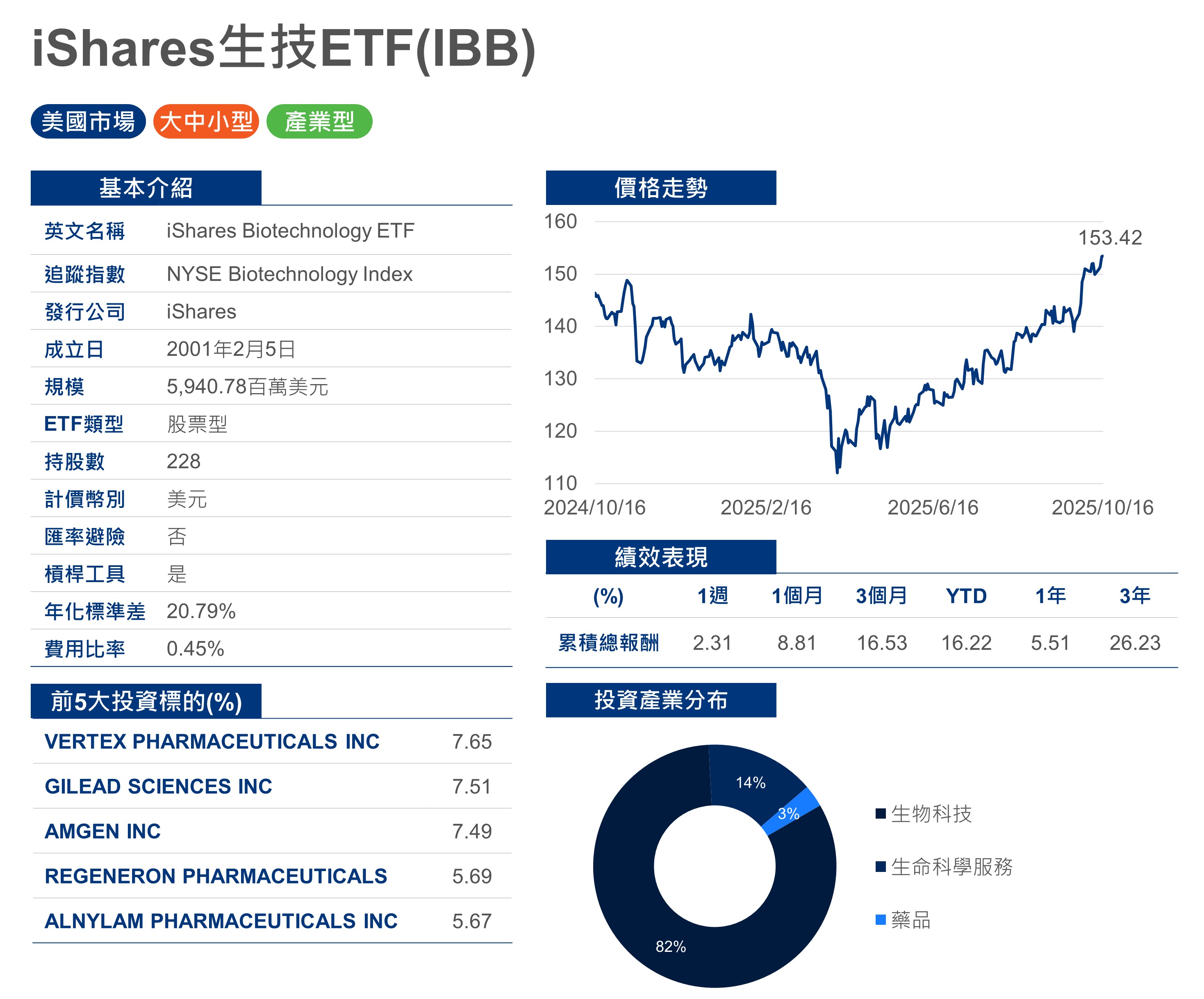 註:上述ETF為美國市場上市ETF,以生技(Biotech)相關主題ETF進行篩選得出結果,提供市值規模前2大ETF,資料截止日2025年10月7日。