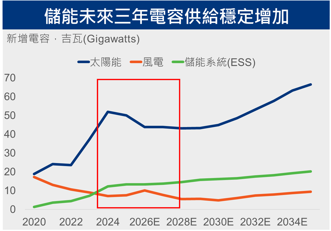 1️⃣ 2026年至2028年清潔能源裝機量轉保守,電池儲能增強電網韌性成剛需