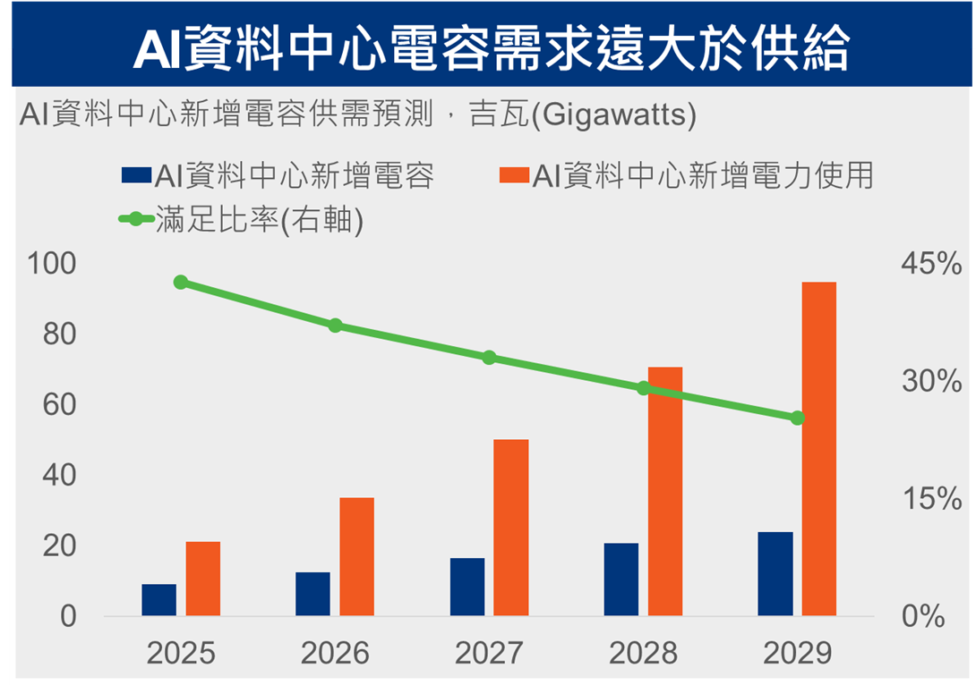 2️⃣ 根據AI晶片訂單估計資料中心電力需求顯示,電力需求缺口持續擴大